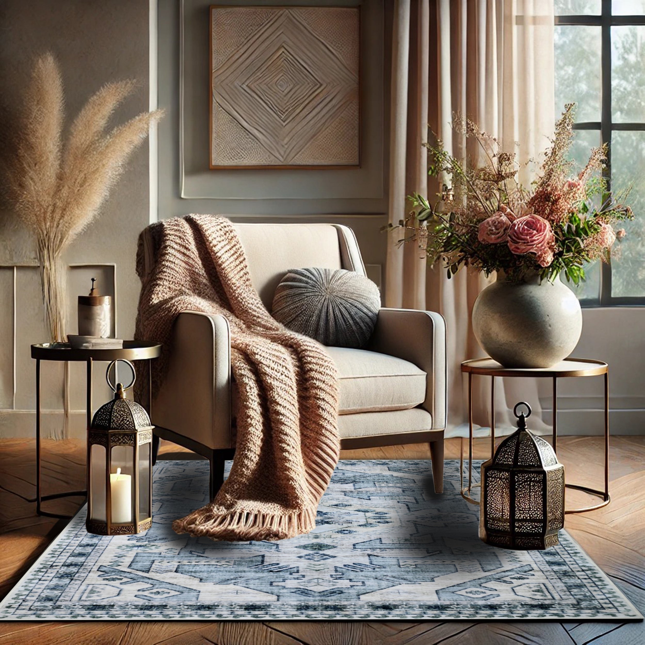 Transform your space with the Bibb Home Washable Flannel Printed Area Rug, a perfect blend of style, comfort, and practicality. Made from luxuriously soft flannel, this plush area rug enhances any living room, bedroom, dining area, or office with its elegant printed design. The durable latex backing prevents shifting, making it a safe and secure choice for high-traffic areas. Easy to clean and machine-washable, this rug is both stylish and practical for modern homes.