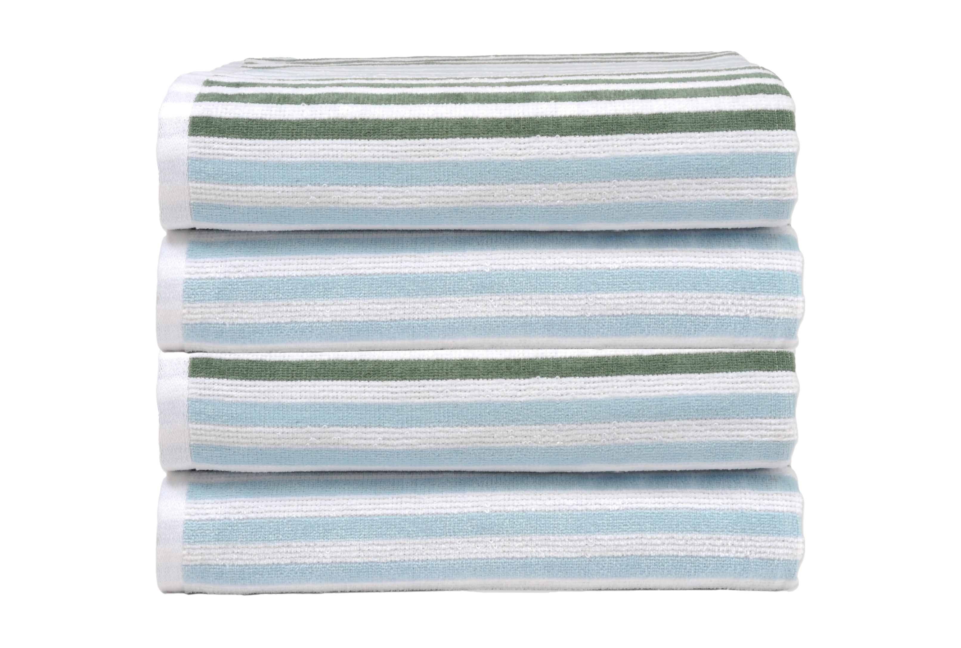 Indulge in seaside luxury with the Dan River 2-4 Pack Cabana Stripe Beach Towel Set, a perfect blend of style, comfort, and versatility. Crafted from 100% velour cotton, these towels offer a plush feel that caresses your skin, making every beach outing or poolside relaxation a pampering experience. Available in a palette of six vibrant colors, you have the freedom to express your personal style or mix and match for a dynamic, eye-catching ensemble. The timeless cabana stripe design adds a touch of elegance to any occasion or style, while the generous dimensions provide ample coverage for drying off or lounging in the sun. Our Super absorbent towel is made to effective absorb water and dry quickly. Simply machine wash cold for hassle-free maintenance.